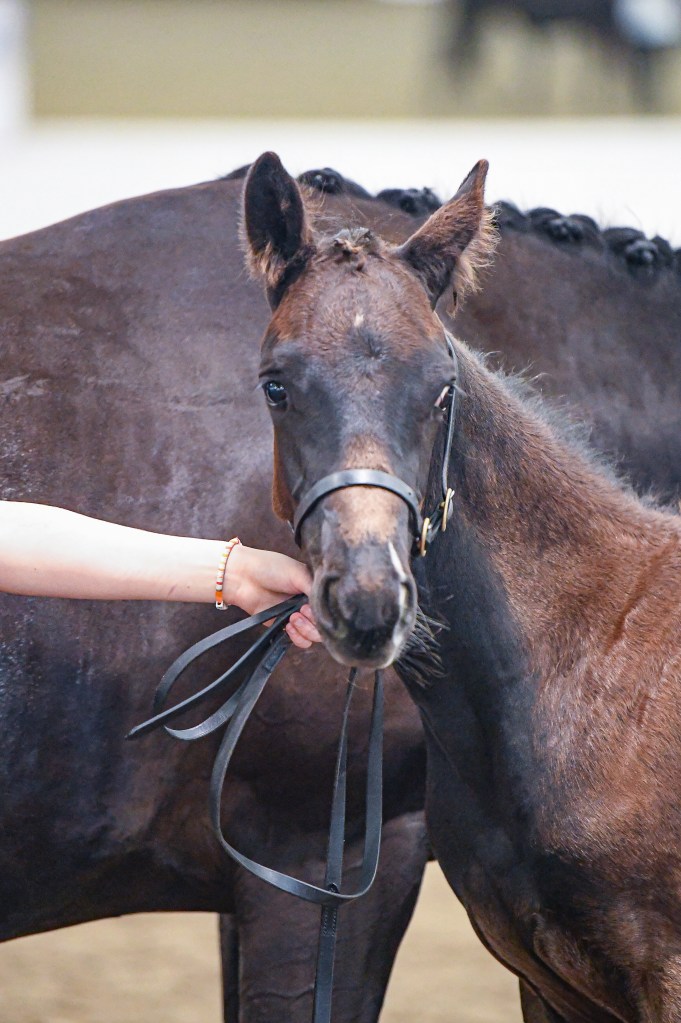 28th August 2024 – Nikkita Fireblade, 2024 jet black Trakehner colt by Snowfire scored Gold at the British Breeding Futurity with a fantastic result of 8,275 and 2nd in his class! Congratulations to his breeder Nicola Jooste. Fireblade’s dam is the AES graded Trakehner mare Keatinge Firefly by Elfenstein out of a Tycoon-Latimer dam. He was the only purebred British born Trakehner colt presented and one of the youngest contestants with 3 months.