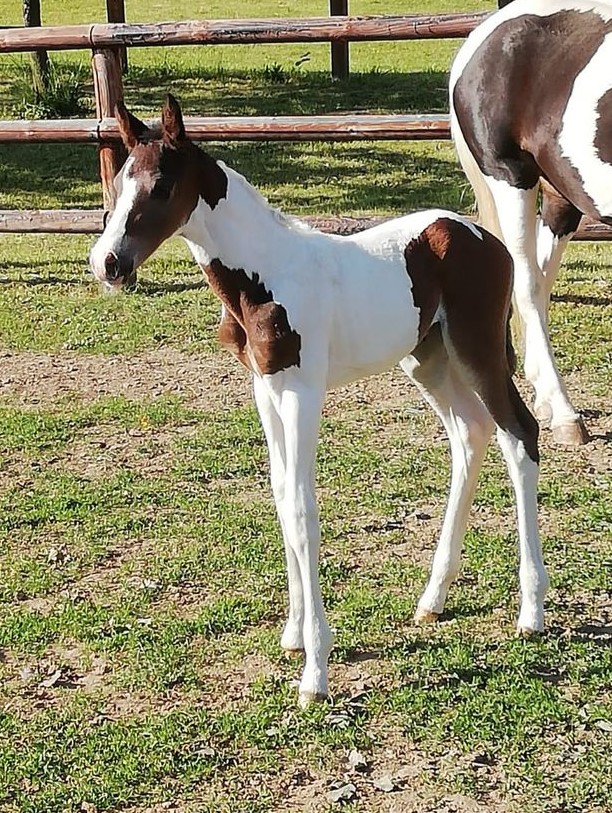 Sonata di Luna, 2022 filly, Snowfire St Angelo x Sanyo – Columbus, Royal Dutch Warmblood, qualified for Championnat de France with excellent grades for model, type and gaits. “Très chic” commented the judge!